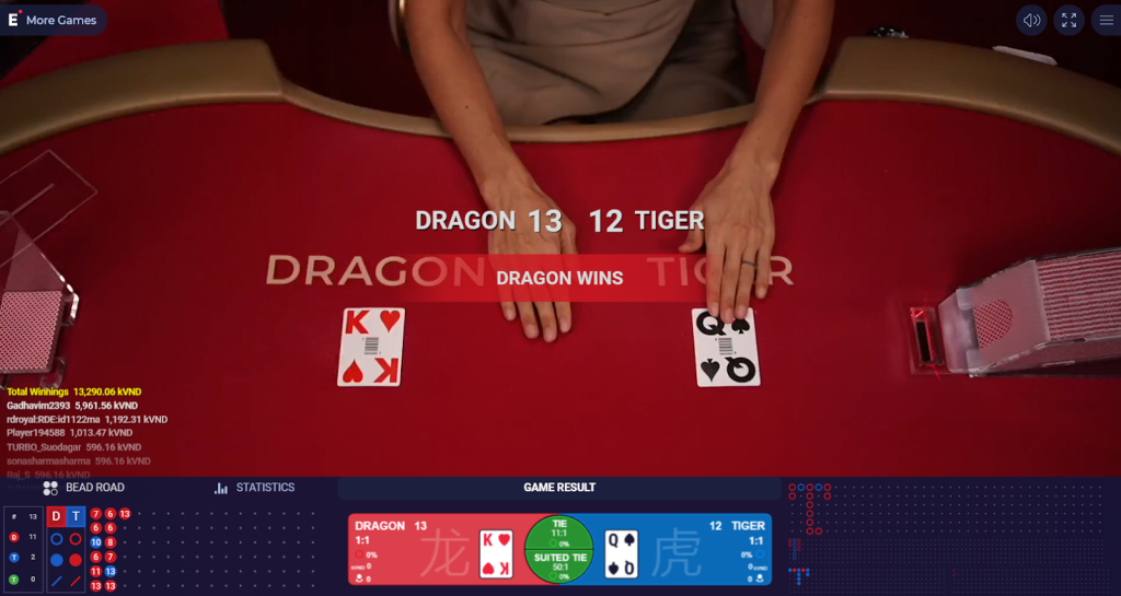- High winning probability: With a win rate of approximately 44.62% (excluding ties), players maintain a balanced game and have a chance to recover their losses quickly.